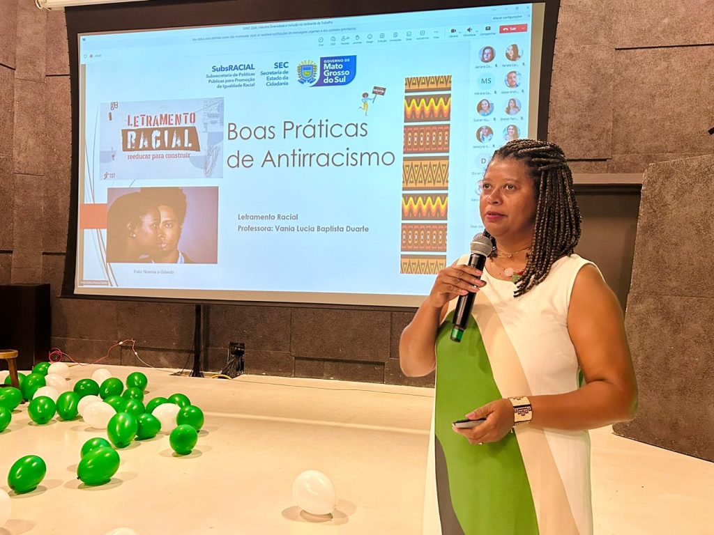 A subsecretária exemplificou expressões muitas vezes usadas no dia a dia e que têm um cunho racista, e quais são os caminhos para enfrentamento ao racismo. “Letramento racial, darmos voz à história e à legitimidade dos espaços para as letras e pessoas pretas”.